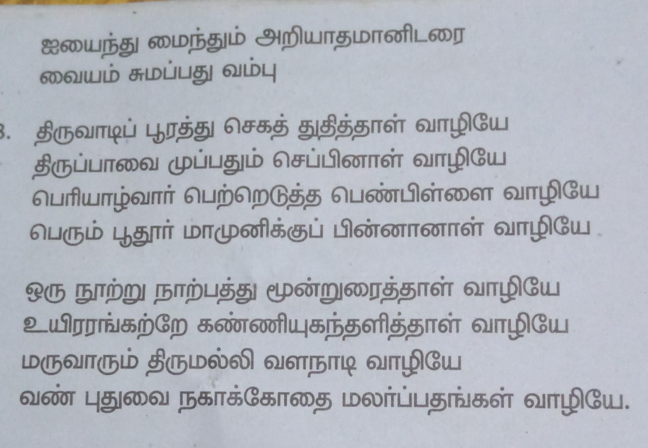 உலக மகளிர் தின நல்வாழ்த்துக்கள் சுமார் 1000 ஆண்டுகளுக்கு முன்பாகவே ஸ்ரீ ஆண்டாள் ஔவை பிராட்டி சுதந்திரத்தை கையாண்டு தமிழை வளர்த்துள்ளனர் அவ்வகையில் ஸ்ரீ ஆண்டாள் நாச்சியாரை வணங்கி போற்றி மகிழ்வோம்